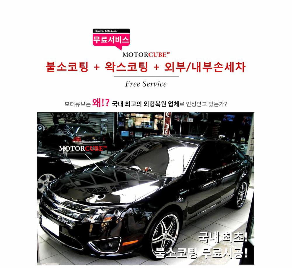 하지만 모터큐브는 자체 불소코팅 기술력을 완성하여 국내 유일하게 가장 완벽한 자동차 외형복원 업체로 인정받고 있으며 XTM 더벙커 “1화 - 자동차 외형복원과 광택의 모든 것” 편에 출연하여 입증되었습니다.